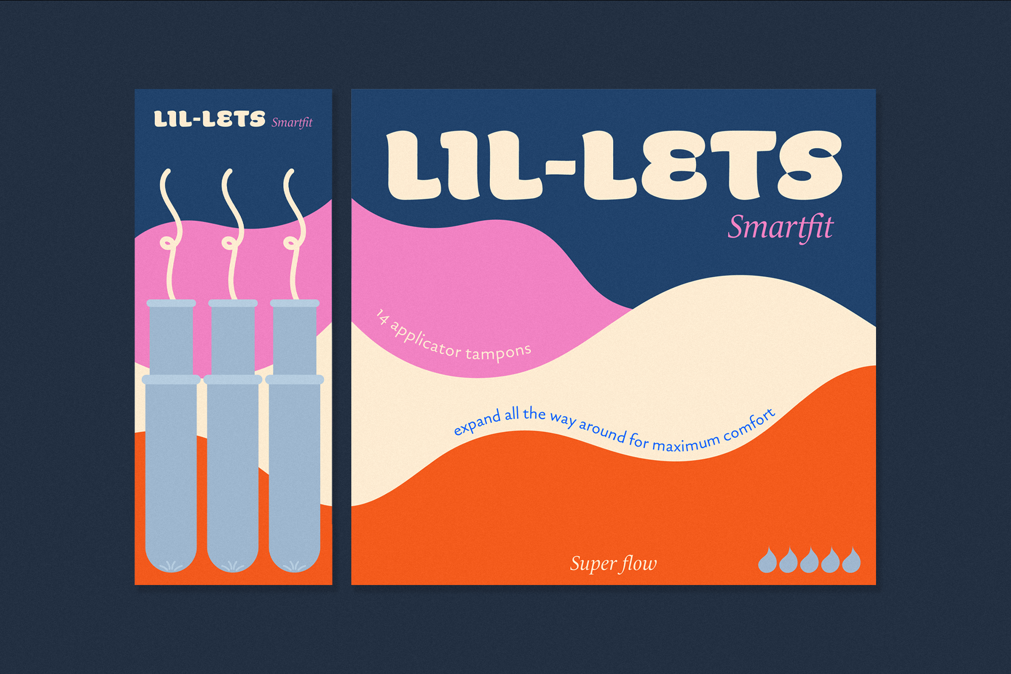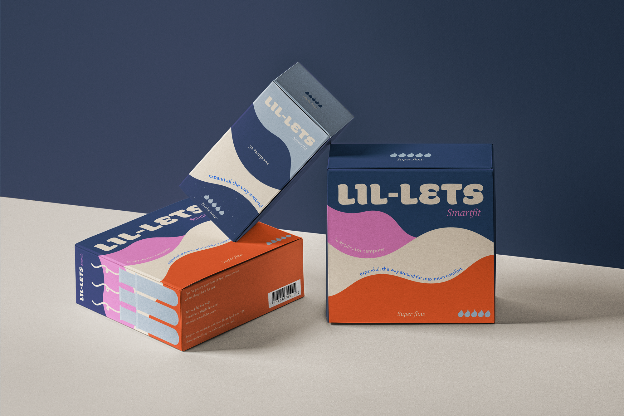 Lil-lets is a period hygiene brand. The reimagined identity and packaging for the brand moves away from outdated and stereotypical designs that are often seen on female-targeted period hygiene products i.e. the predominant use of pink, random abstract designs and overly feminine messaging. The proposed new identity adopts cleaner, more purposeful and harmonious design choices that instead deliver a messaging of hygiene, comfort and inclusivity.